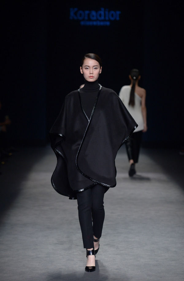 源于夢(mèng)影般深邃悠雅的現(xiàn)場(chǎng)氛圍設(shè)計(jì),與豐足質(zhì)感的Koradior elsewhere2016秋冬系列完美碰撞,讓我們將更多的視線聚焦于時(shí)裝本身。超模梳著利落的低馬尾造型,著一襲立體剪裁的斗篷+闊腿褲為這一季的女裝系列發(fā)布拉開(kāi)序幕,凝神靜氣的表情和靜謐的暗色調(diào)透出不言自醒的詩(shī)意與力量。光影的變化在面料上形成明暗的漸進(jìn),猶如曼妙的樂(lè)章在流淌。