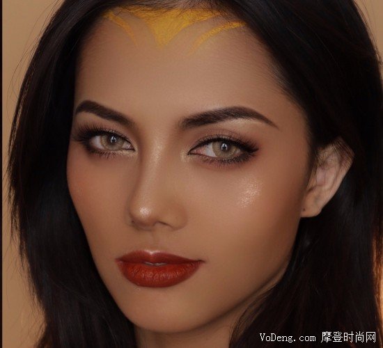 歐美人認為小麥色和巧克力色膚色才是最好的、最健康的,但是他們不去做美黑的話,自身膚色通常都比較偏白,所以他們的底妝產品都傾向于高遮瑕力度的深色底妝。歐美妝常見產品“古銅粉”修容更是很好的掩蓋了自身膚色,同時又可以提高視覺效果上的歐美人的五官明暗度和折疊度。歐美妝在底妝工具上的選擇通常傾向于大面積涂抹的美妝刷,因為這樣利于大面積上妝鋪色,更好掩蓋自身膚色。
