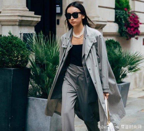 灰色相對于白色的過于“膨脹性”和黑色的過于“收縮性”,則顯得比較中性化。其實灰色也是收縮色,與黑白二色也能“默契十足”地搭配在一起,讓你顯得復古又靈動。