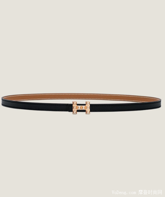 這款皮帶是帶有帶扣的,鍍金玫瑰金金屬皮帶扣鑲有鉚釘元素,盡顯高貴的同時又不失風味,雙面小牛皮的材質耐磨耐用,精致小巧的帶身能更顯你腰肢的搖曳多姿。最重要的是,愛馬仕中國官網里,這款百搭的皮帶價格僅有4600元!真是個心動價格!
