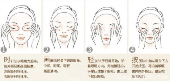 3、按摩完畢后,再用你手上的多余眼霜去按壓你臉上的幾個穴位,促進(jìn)血液循環(huán),這樣就是正確的使用步驟啦。
