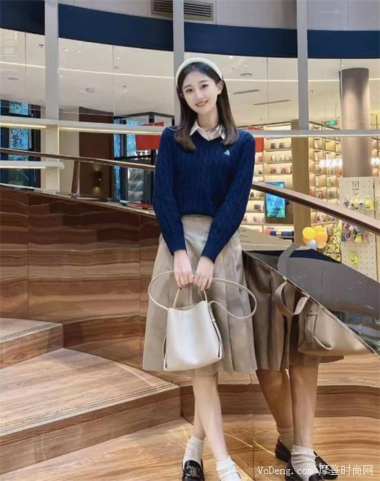 卡其色與寶藍色搭配起來就會讓你看上去像一位書香氣十足的溫柔學姐,氛圍感直接拉滿!