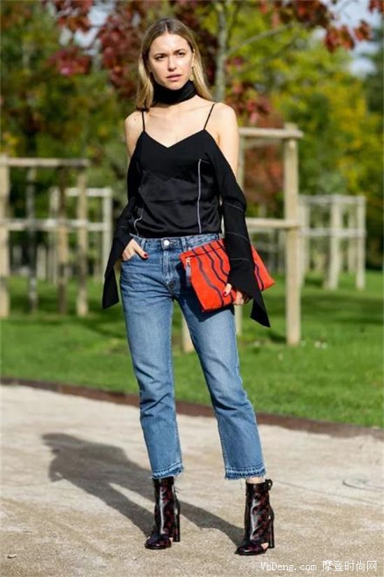 吊帶與牛仔褲的組合新穎出挑,時尚感十足。吊帶上衣很有辣妹感,牛仔褲倘若搭配皮靴就是非常帥氣的搭配,三者結合起來,你就是最吸睛的存在!
