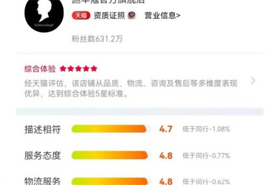 2、施華蔻天貓旗艦店的綜合評價都是很不錯的,均在4.7分以上,給消費者的綜合體驗感能夠到達五星。