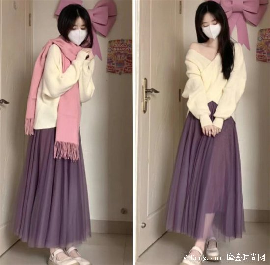 紫色與米白色搭配起來,就給人非常甜美、溫柔的感覺。這種搭配也是受很多人喜歡的,米白色的毛衣加上紫色的紗裙,二者的組合非常夢幻。快將其運用到你的服裝穿搭上面來,你就是人見人愛的小仙女啦。