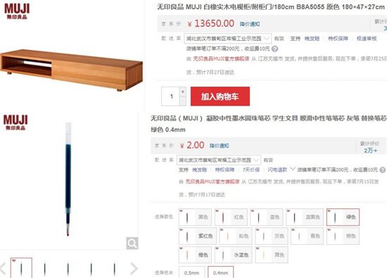 它家最貴的是白橡實木電視柜,一個要13650元;而最便宜的是凝膠中性墨水圓珠筆芯,一根2元。
