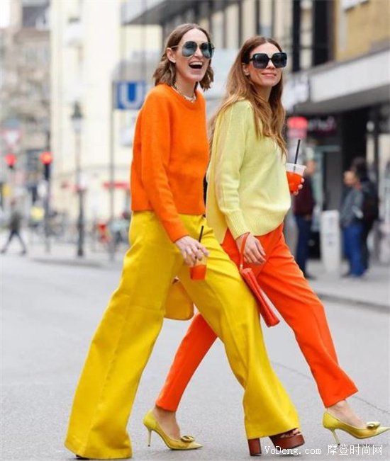 黃色與橙色同為暖色系,橙色更是黃色加紅色得來的顏色,二者本身就恨協調。組合起來也是非常的亮眼,給人很朝氣蓬勃的感覺,同時不乏時尚感。