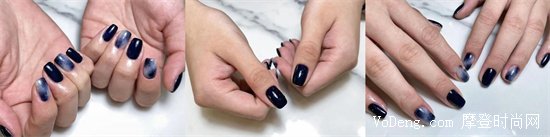 深藍與黑色的融合,非常顯手白,而且有種清冷氣質,大理石紋路也暗含小心機,有種藍莓牛奶的感覺。這款美甲也是一年四季都很適合的,喜歡的就快去嘗試吧!