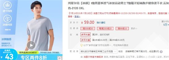 3、冰感t恤男夏季透氣冰絲運(yùn)動(dòng)男士T恤——59元