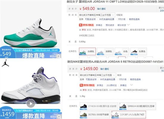 在目前京東在售的aj中,最便宜的鞋子是籃球鞋AIR JORDAN11CMFT LOW運動鞋,一雙549元,而最貴的AJ5復古AIR JORDAN 5 RETRO運動鞋,一雙1459元。
