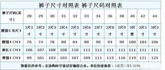 如果褲子處于28尺帶30尺或者是44尺的時(shí)候,你就可以來參考一下這張28尺到44尺的粗略對照表,一般來說1市尺就是33.3cm,你也可以根據(jù)自己的腰圍來換算了。