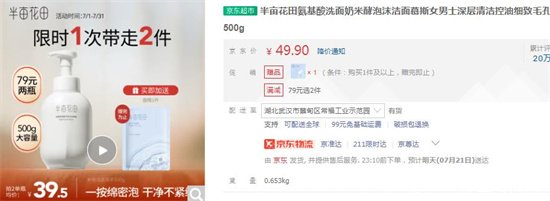 2、半畝花田氨基酸洗面奶——49元