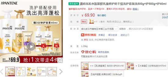 1、潘婷洗發水氨基酸乳液洗護套裝——69.9元