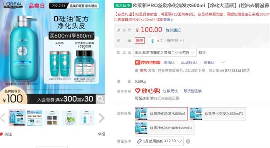 4、歐萊雅PRO絲泉凈化洗發(fā)水600ml——100元