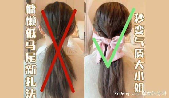 當你厭倦了普通版本的低馬尾的時候,你大可以嘗試一下這款韓系的蝴蝶結溫柔低馬尾。只需要你準備幾個皮筋以及蝴蝶結夾子就夠了。你可以將頭兩側的頭發(fā)向內卷,扎在你的后腦勺的位置。隨后將蝴蝶結夾子夾住頭后部分的頭發(fā),并于兩側頭發(fā)匯合就可以了。