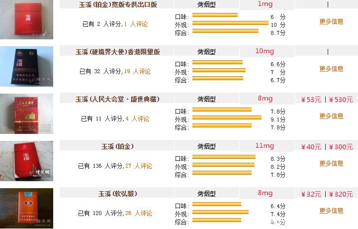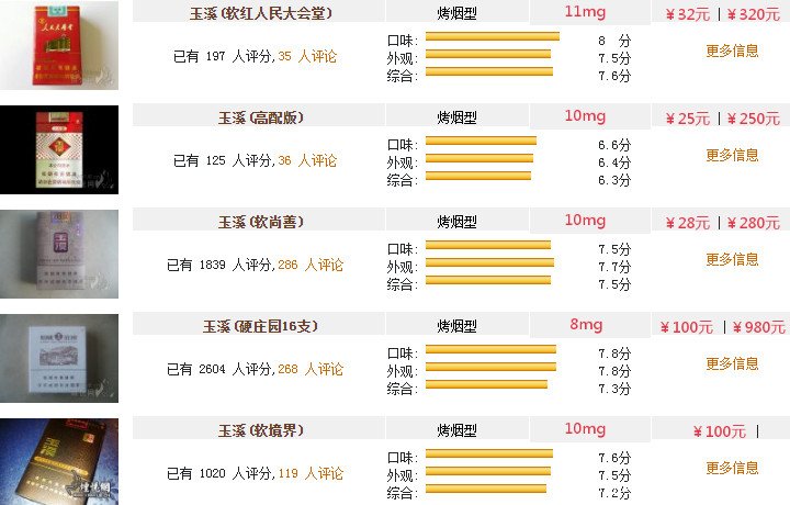2024最新玉溪煙價格表和圖片