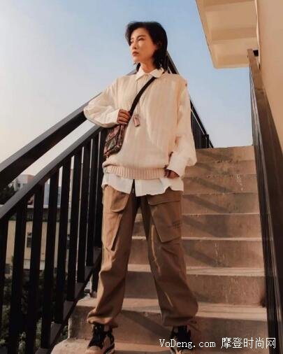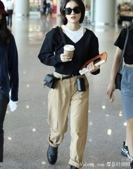 這是張雪迎在北京機(jī)場的穿搭,跟著明星穿總是沒錯的,張雪迎是寬肩厚背,因此穿V領(lǐng)上衣能夠彌補(bǔ)這些缺點,上衣扎在褲子里能夠顯得腰部線條更加完美,這種穿法可以說是揚(yáng)長避短的經(jīng)典案例了,稱其為教科書級別也不會過,跟著穿準(zhǔn)沒錯。
